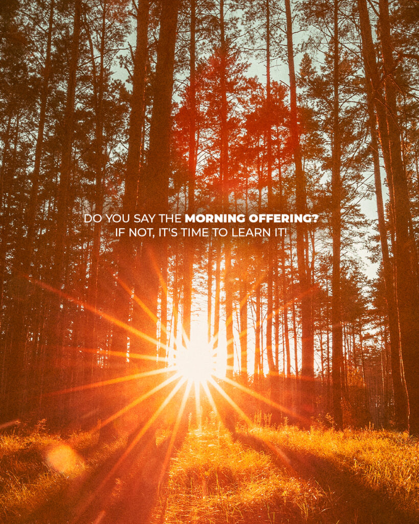O Jesus, through the Immaculate Heart of Mary, I offer you my prayers, works, joys, and sufferings of this day for all the intentions of your Sacred Heart, in union with the Holy Sacrifice of the Mass throughout the world, for the salvation of souls, the reparation of sins, the reunion of all Christians, and in particular for the intentions of the Holy Father this month. Amen.