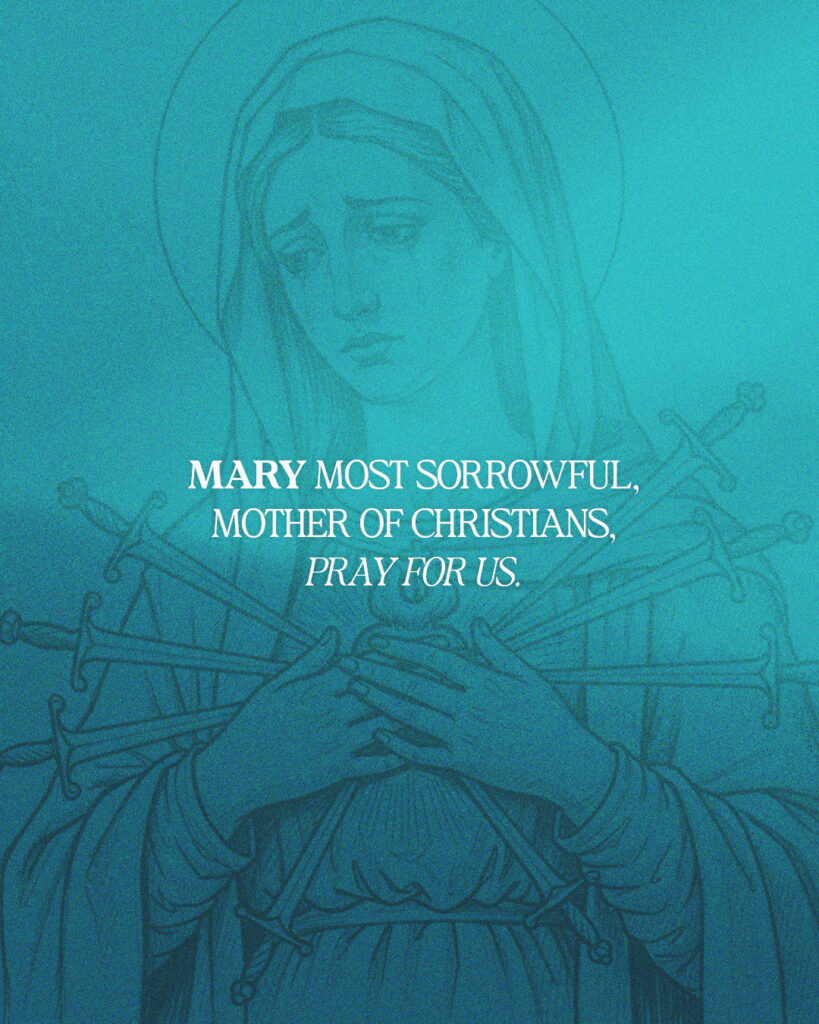 In September, the monthly devotion is to Our Lady of Sorrows. Bring your pain and suffering to Our Lady. She understands.