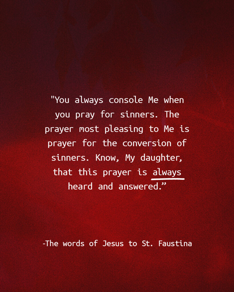 Be inspired to pray for those in your life most in need of prayer. Jesus assured St. Faustina that He would hear and answer this prayer for the conversion of hearts. Lord, have mercy on us and on the whole world!