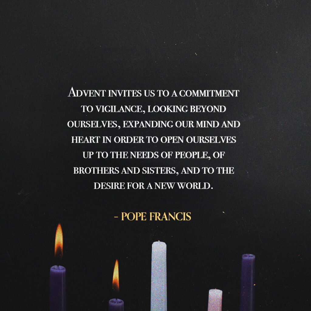“Advent invites us to a commitment to vigilance, looking beyond ourselves, expanding our mind and heart in order to open ourselves up to the needs of people, of brothers and sisters, and to the desire for a new world.”