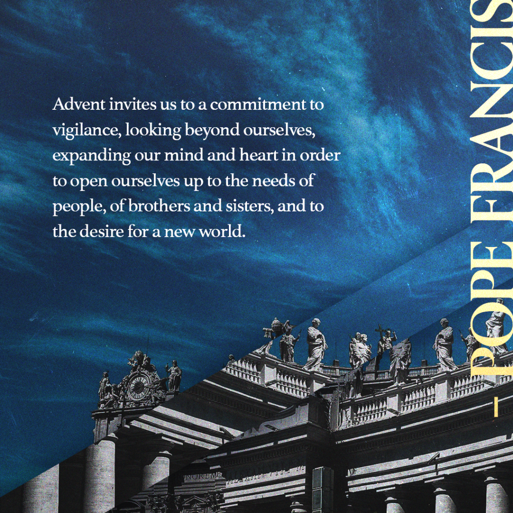 “Advent invites us to a commitment to vigilance, looking beyond ourselves, expanding our mind and heart in order to open ourselves up to the needs of people, of brothers and sisters, and to the desire for a new world.”