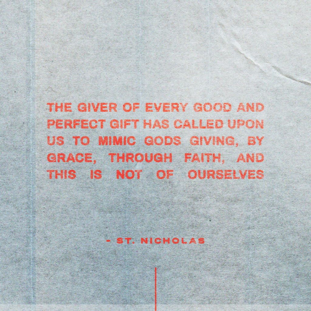 “The giver of every good and perfect gift has called upon us to mimic Gods giving, by grace, through faith, and this is not of ourselves.” – St. Nicholas