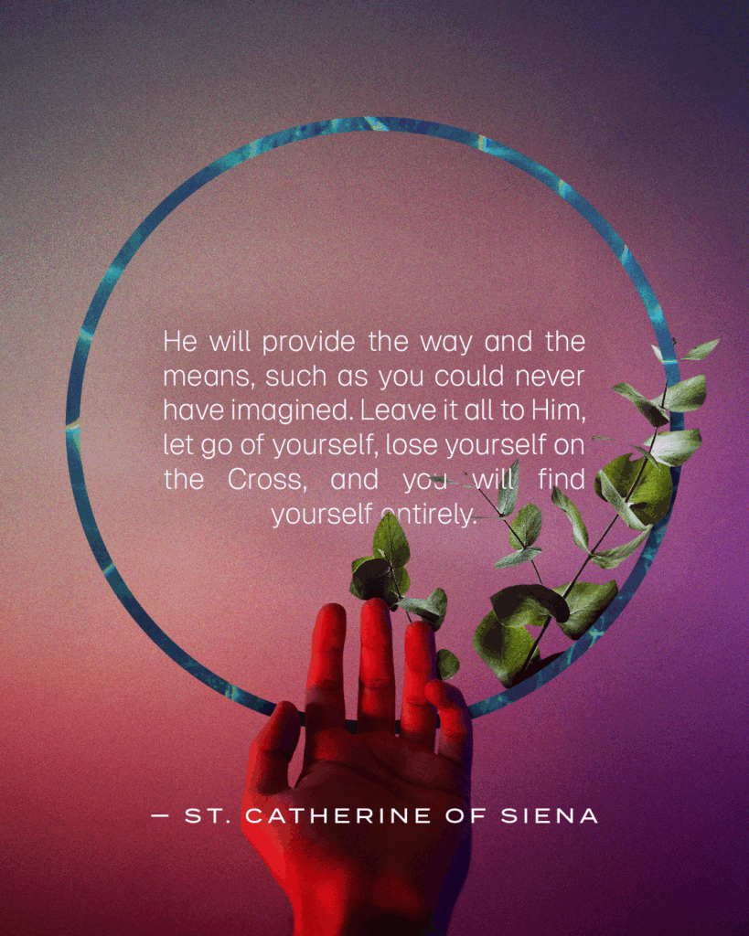 “He will provide the way and the means, such as you could never have imagined. Leave it all to Him, let go of yourself, lose yourself on the Cross, and you will find yourself entirely.”