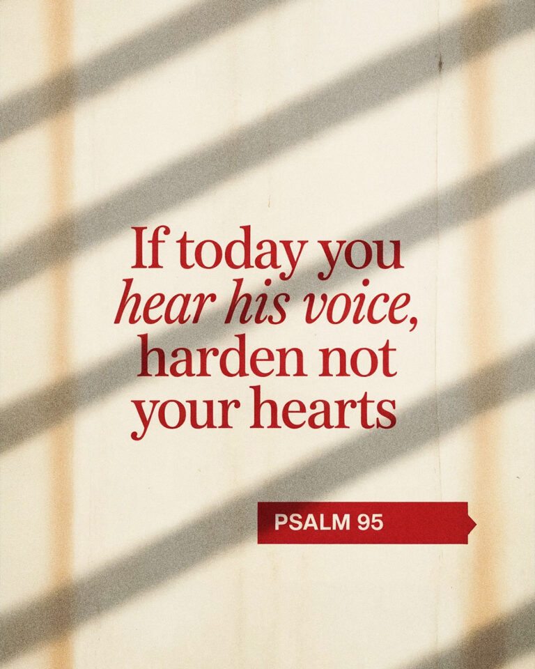 Today's Psalm reminds us: “If today you hear His voice, harden not your hearts.” Today... not tomorrow...is the moment of grace. Lord, soften our hearts. Help us to recognize Your voice and to follow You faithfully.