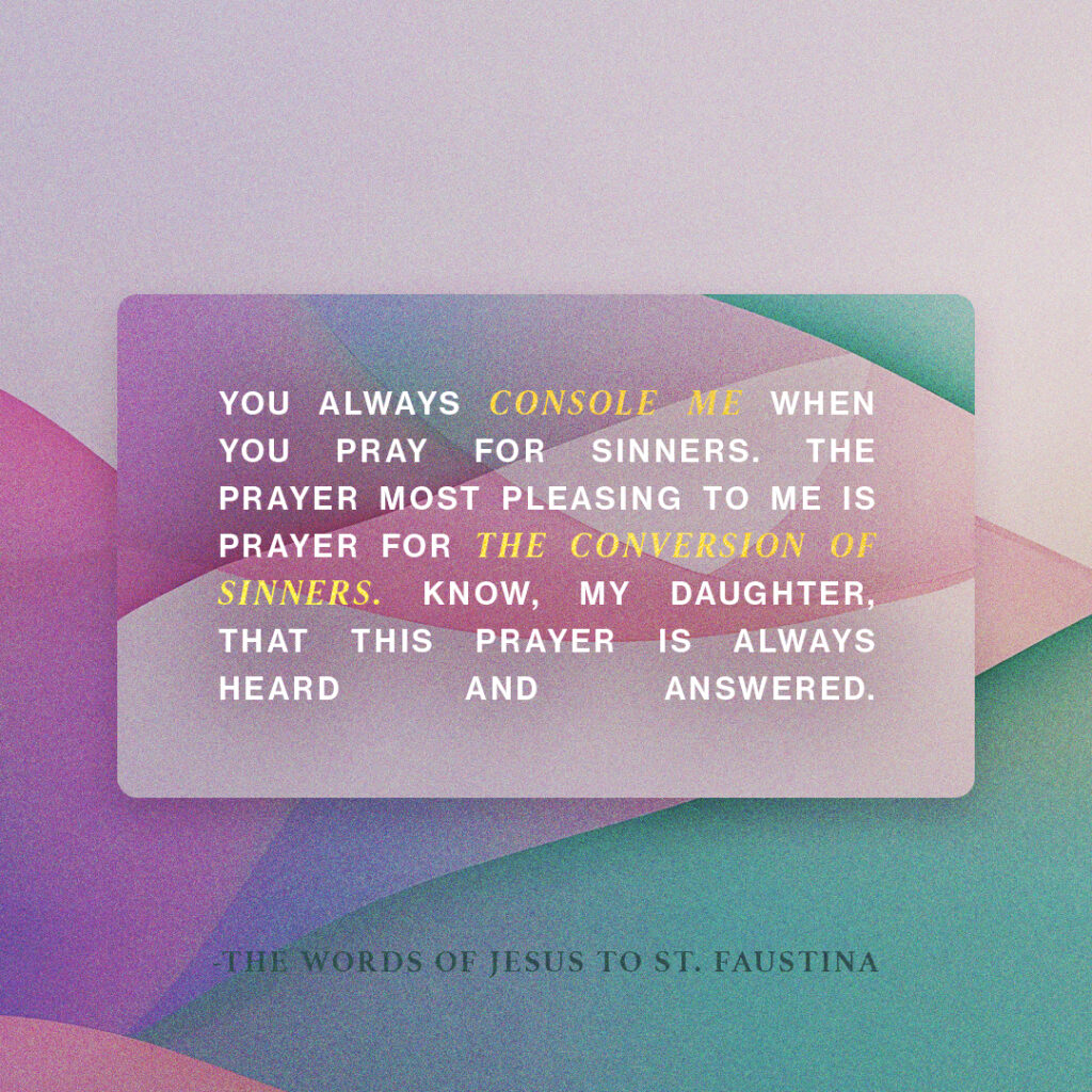 “You always console Me when you pray for sinners. The prayer most pleasing to Me is prayer for the conversion of sinners. Know, My daughter, that this prayer is always heard and answered.'”