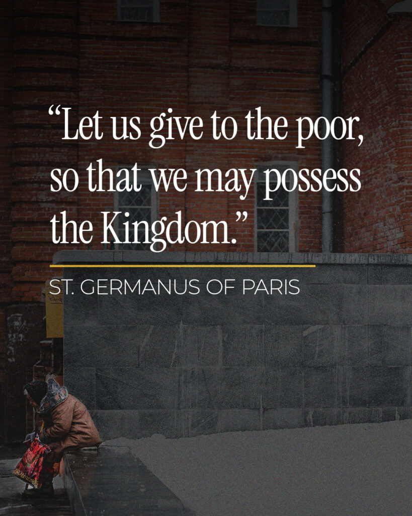 βLet us give to the poor, so that we may possess the Kingdom.β β St. Germanus of Paris