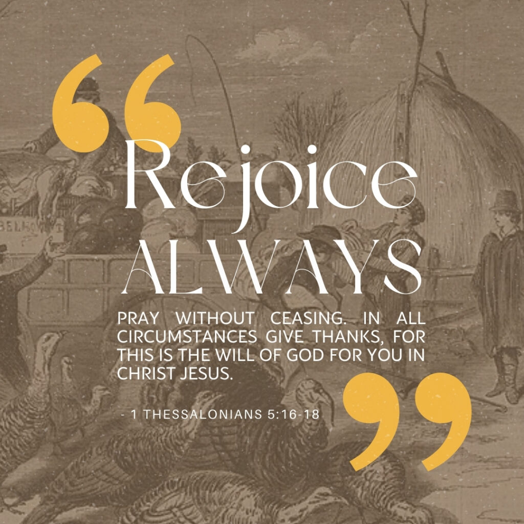 “Rejoice always. Pray without ceasing. In all circumstances give thanks, for this is the will of God for you in Christ Jesus.” – 1 Thessalonians 5:16-18
